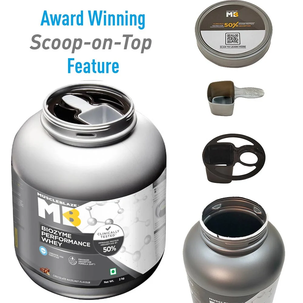 - MuscleBlaze ® Biozyme Performance Whey is a Labdoor, USA tested & certified whey protein formulation with the highest possible grading of A+ for its all-accurate claims & purity. Launched in a delicious Rich Chocolate flavour