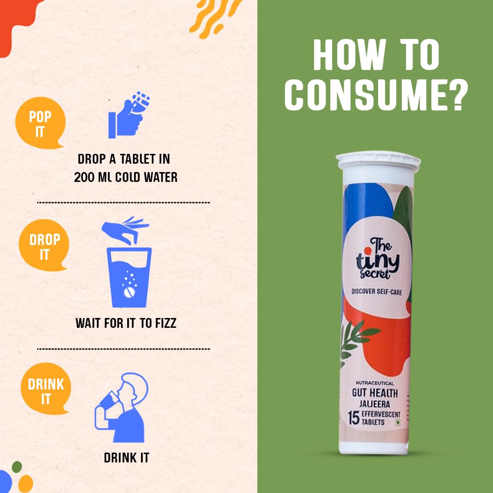 The Tiny Secret Gut Health Jaljeera Flavoured Fizz | Pack of 30 Fizz Tablets | 10 Billions Cfu Probiotics | Best Gut Health Supplement for Men & Women | Zero Sugar, Low fat & Low Calorie | 172 gm