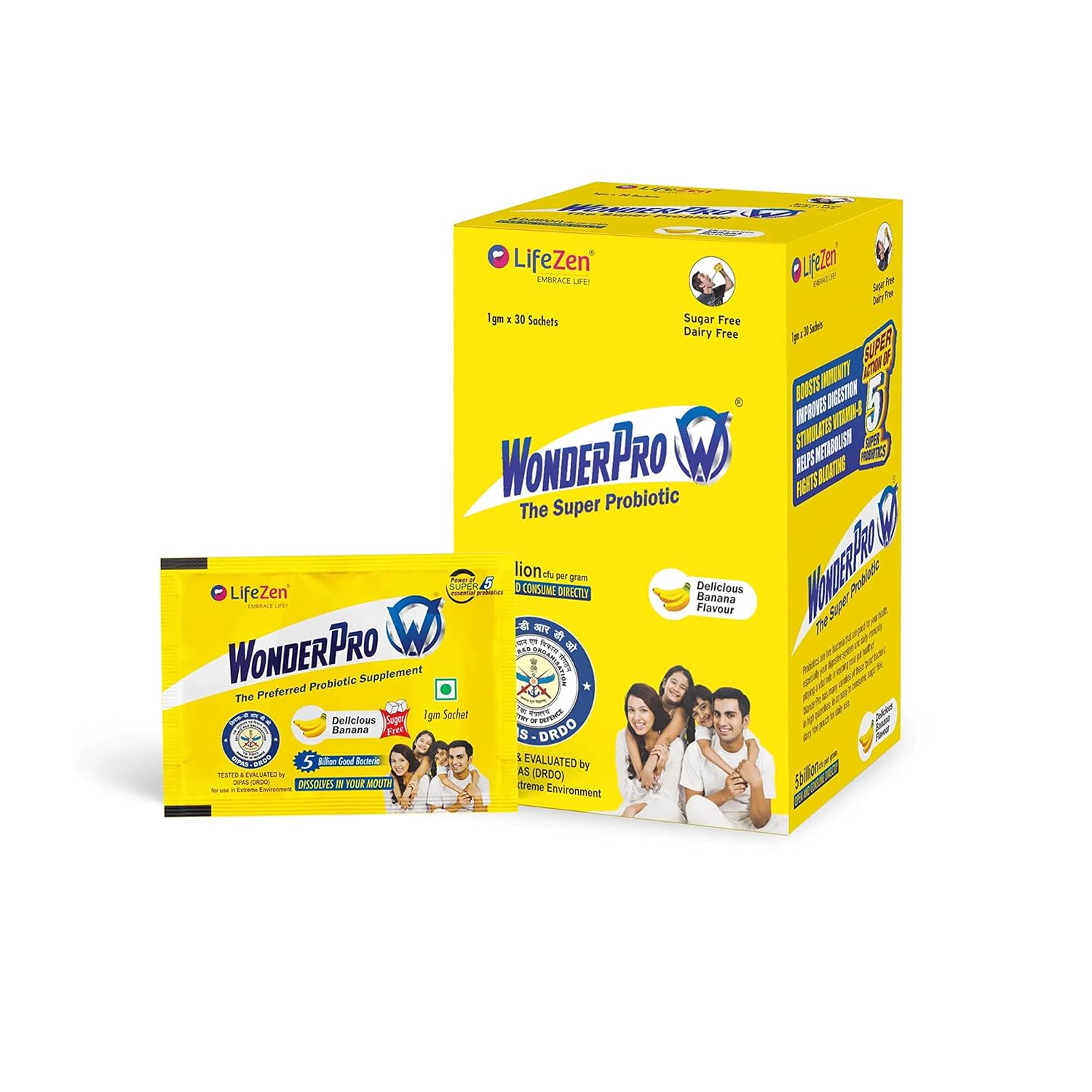 Wonderpro Probiotic Supplement Sugarfree 30 Sachet (Pack of 1) | Good for Digestion, Reduce Bloating l No Gluten & No lactose | (1gm Each Sachet)